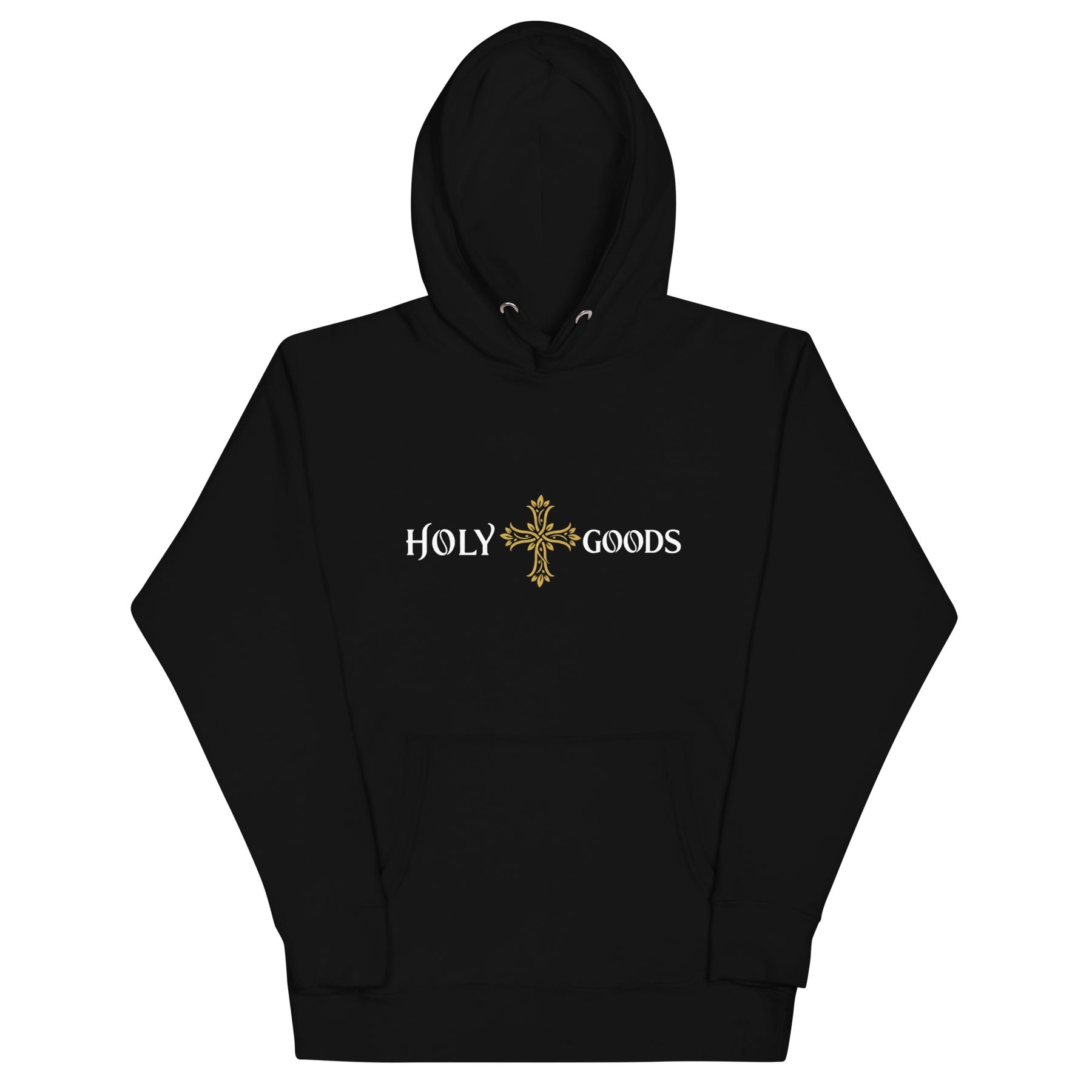 The Holy Goods signature hoodie wraps you in purpose. Premium cotton-blend comfort, bold logo, and a fit that feels like it was made for you (once you size up).