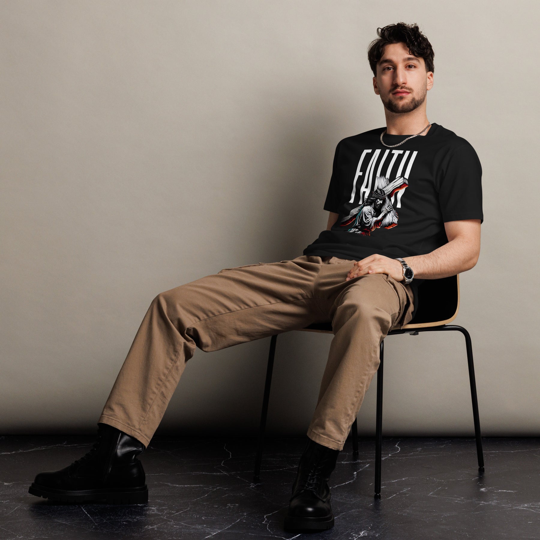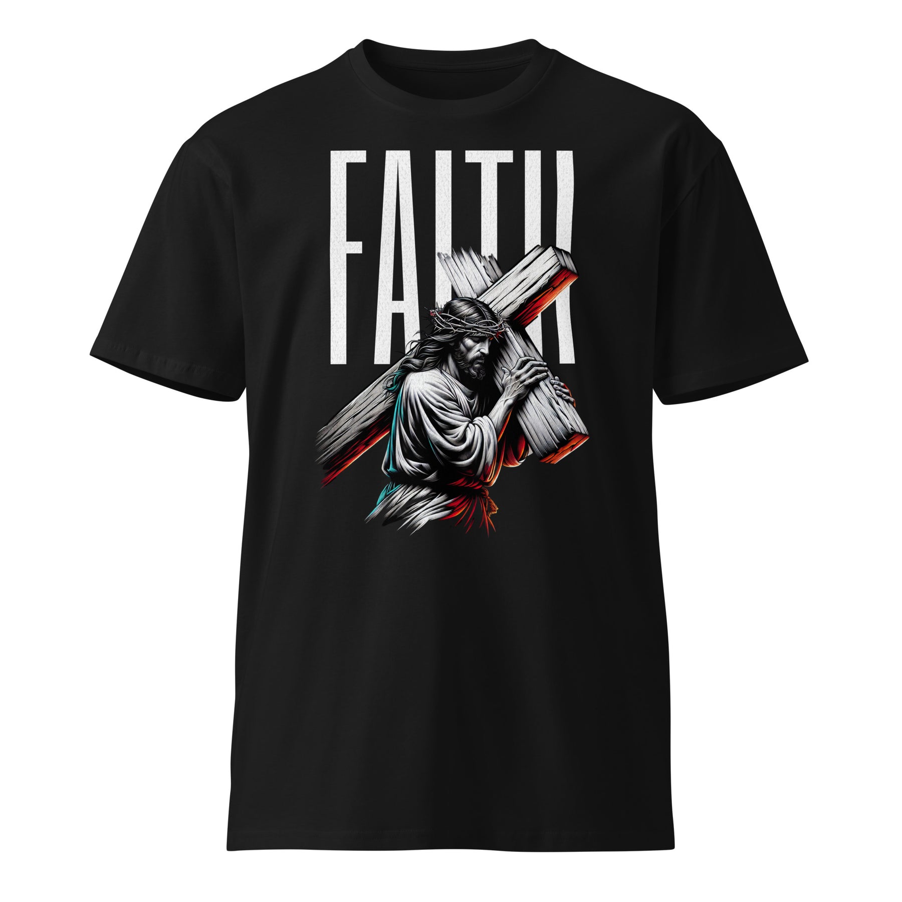 "Faith in Jesus"—there it is. No metaphors, no subtlety, no apologies. This back logo tee says exactly what you believe and who you follow.