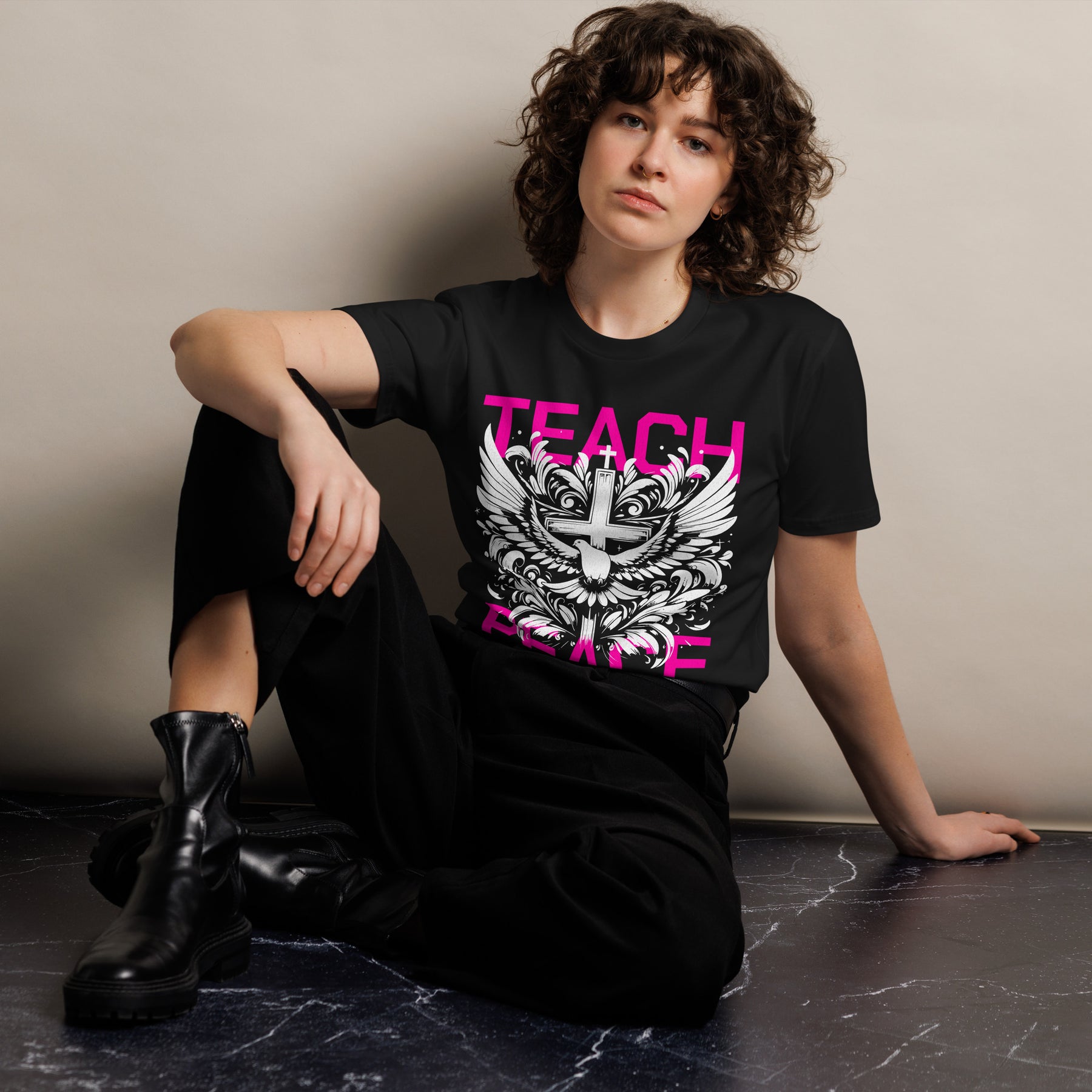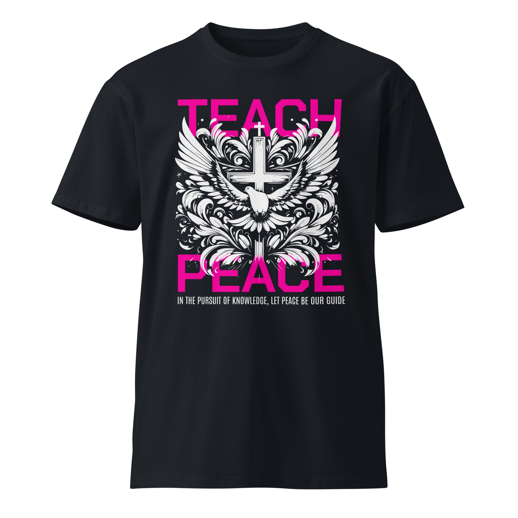 "Teach Peace"—two words that change everything. In a world of chaos, division, and noise, this shirt is a quiet revolution on your back.